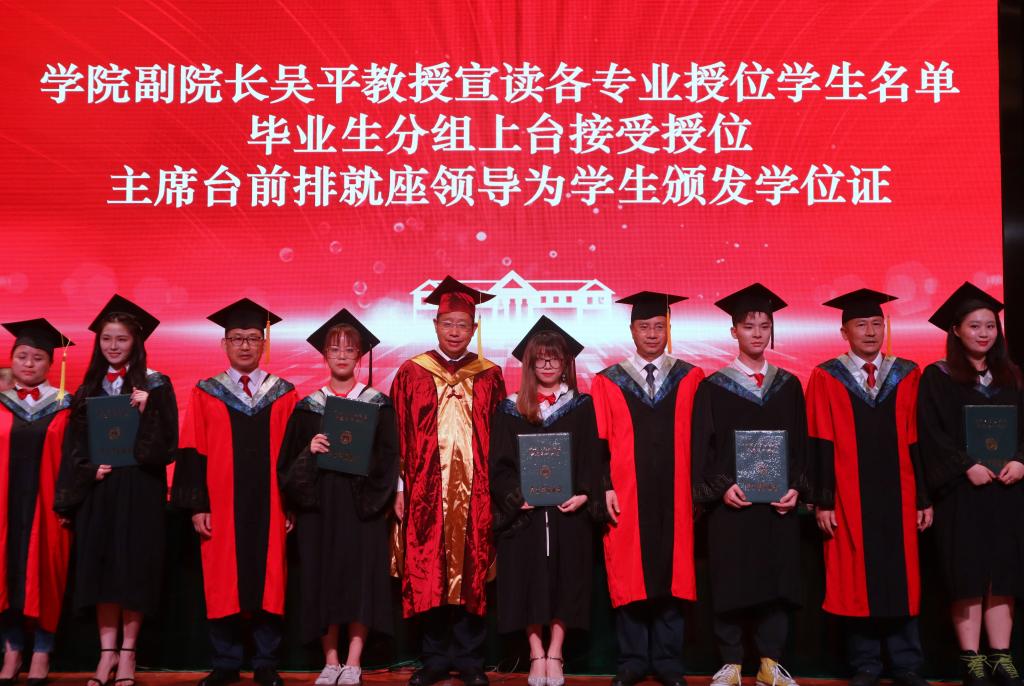 这是充满着喜悦与骄傲的一天,上台接受学位证书的毕业生们恭敬地同领导鞠躬、握手,拨正流苏、双手捧过证书,含笑转身,合影定格……岁月不拘,时节如流。在这四年的时光里,他们历经无数喜怒哀乐,积累万千知识,预演工作百态,在打磨和历炼中成功蜕变,更加坚定了继续前行的信念,昂首阔步崭新的人生路。