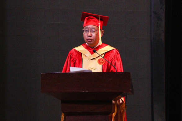 在庄严的国歌声中,3200威尼斯vip2024届学生毕业典礼暨授位仪式拉开序幕。学院院长曾维忠教授回顾了本届毕业生在思想成长、读书治学、文体活动、国际交流和升学就业等方面取得的丰硕成果。他讲到,今年威尼斯官网共有129名研究生和458名本科生顺利毕业。其中21名同学被评为四川省优秀毕业生,51名同学被评为学校优秀毕业生。有11名同学赴英、法等国联合培养或交换并获得了双学位。有100余人进入成都市新都区政府办、巴中市委组织部、税务局、四川省林勘院等党政机关、事业单位,200余人进入中国农业发展银行、中国银行、中国石油、中国平安人寿、中国国际航空、宁德时代等央企、国企或世界500强企业工作;有110名同学进入中国人民大学、中央财经大学、中央民族大学、对外经济贸易大学、南开大学、华中科技大学、厦门大学、四川大学、山东大学等985、211工程大学或财经类名校继续攻读博士或硕士学位;有46人即将赴新加坡国立大学、墨尔本大学、悉尼大学、爱丁堡大学、香港大学、曼彻斯特大学、纽约大学、伦敦国王学院、香港中文大学、德国波恩大学、法国南锡高等商学院等国际知名高校继续深造。
