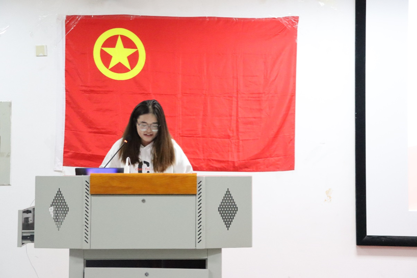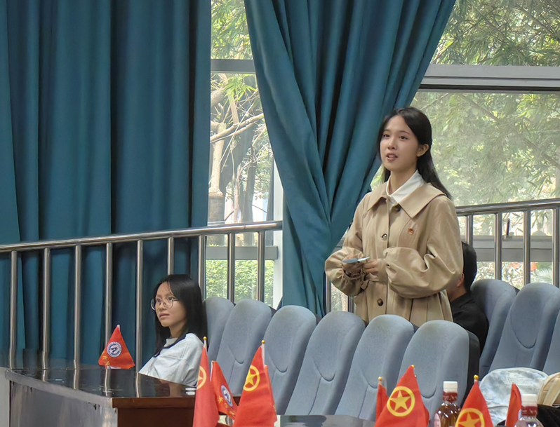 知识竞答展风采,实践精神映初心。在新中国成立七十五周年之际,以知识竞答的形式回顾历史,引领同学共同回顾新中国成立以来波澜壮阔、跌宕起伏的历史进程;校十佳团队“金融助力乡村产业振兴百村大调研”负责人汤立秀分享暑期实践中走在乡间农田里,走进寻常百姓家,用笔记录最基层的乡村生活,希望团员青年积极投身于社会实践,挺膺担当与无私奉献。