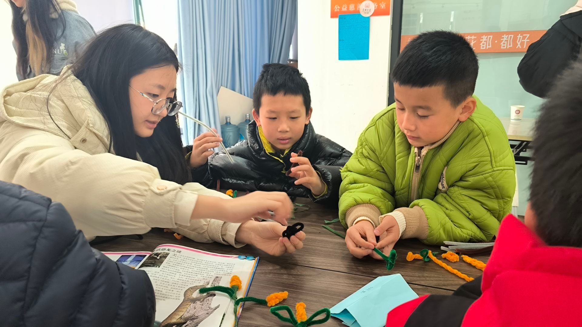 中国作为农业大国,农业发展史是人类智慧与自然和谐共生的生动见证。本次冬令营特别设置“小小农学家”环节,农学专业成员为孩子们讲解农作物种植基本原理和农具知识,并组织开展"豆芽成长记"项目。在为期七天的浸种、催芽、光照实验中,孩子们亲眼见证生命奇迹。活动期间,实践队成员还带小朋友前往成都自然博物馆进行参观,让孩子们对自然知识有了更加深入的认识。此外,冬令营还举办农具DIY活动,鼓励孩子们用废旧纸盒和扭扭棒制作创意农具挂画,既环保又充满艺术气息,极大激发了孩子们对农业科技的兴趣!