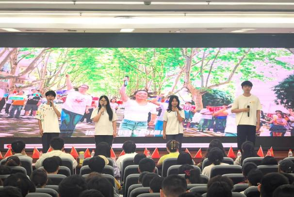 活动伊始,全体同学起立齐唱团歌。激昂的旋律、嘹亮的歌声,这不仅是青春的誓言,更是团员青年砥砺前行的号角。随后,校青马班第十一期学员唐鸿林以“青年风采与时代使命”为主题,深入解读习近平总书记给谢依特小学戍边支教西部计划志愿者的回信精神;同时,西部计划工作者们以视频的方式,结合自己的亲身经历,真诚而深刻地分享了他们的支教收获与感悟,激励团员青年用青春丈量祖国大地,用奉献诠释家国情怀。