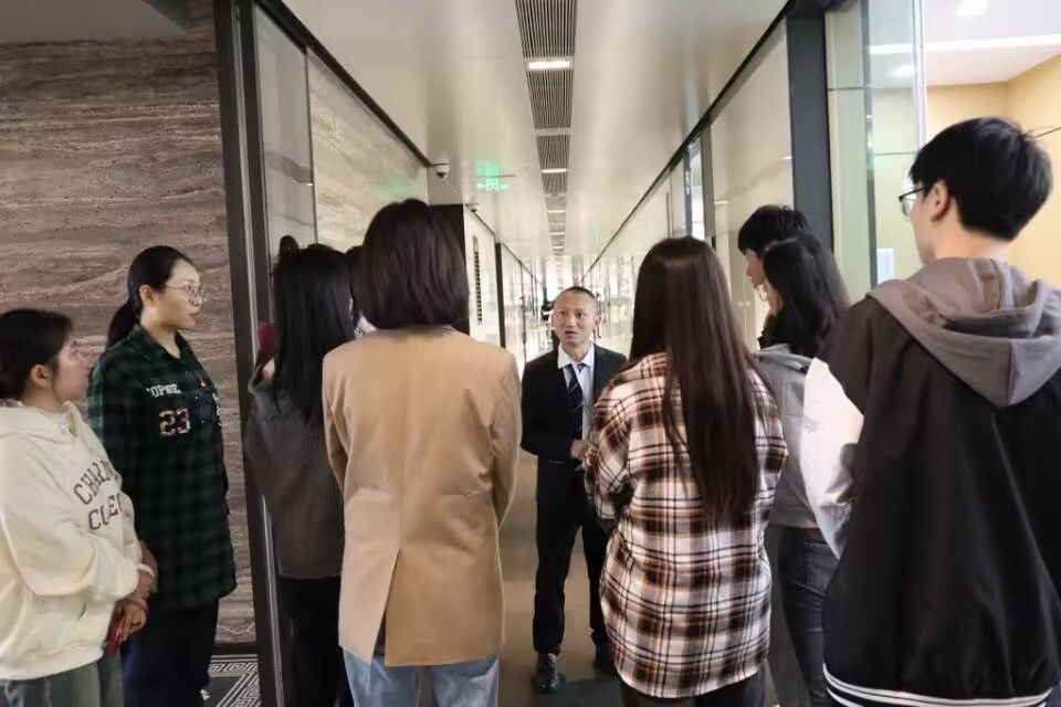 师生一行参观了公司的整体布局、功能区域和办公环境,了解了公司的发展历程、主要业务和企业文化。理财三部总经理周圆皓详细介绍了投资经理助理、投行业务岗、理财顾问和财务顾问这四类在校招中常见岗位的任职条件、岗位职责和发展空间。对于即将进入职场的在校生,周圆皓给出了“学历可以影响职场起点,但不能决定发展长远”“今天的积累深度将决定你未来发展的速度,今天的积累广度将决定你未来成就的高度”等中肯建议。