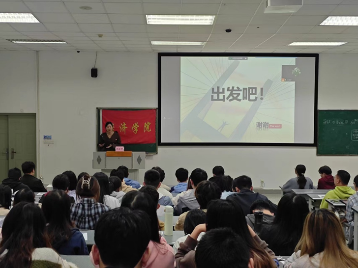 成功上岸金融学、国际贸易学的研究生代表龚星萍、张依分享了考研实战经验,结合自身经历从考研准备、考研复习策略、考研复试及考研调剂技巧等方面,深入剖析了考研过程中的难点与挑战,并分享了备考策略和应试技巧,强调了考研目标调整的重要性,鼓励同学们制定合理的复习计划,保持积极的学习态度。
