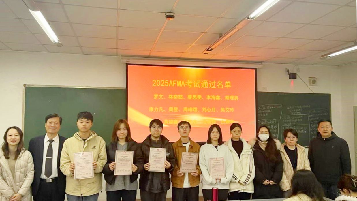 讲座结束时,黄达业教授和学院副院长吴平教授为考取AFMA证书的同学颁发荣誉证书,并鼓励他们继续在金融领域深耕,为金融强国建设贡献自己的力量。