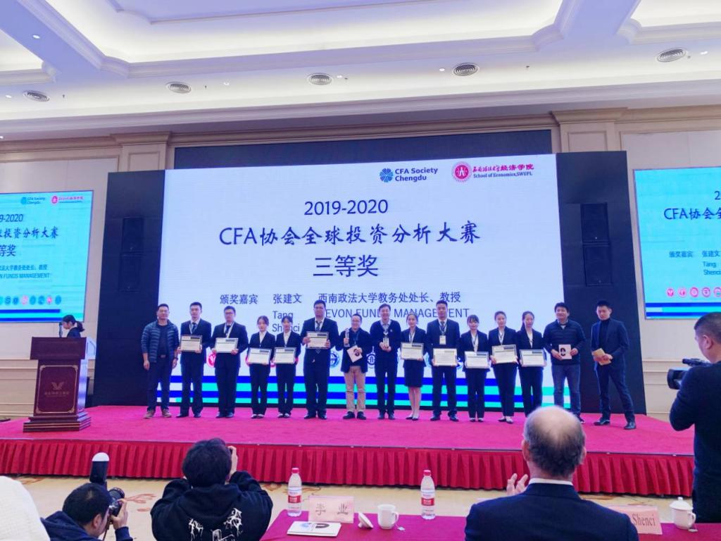12月27日至28日,由CFA协会主办、西南政法大学承办的2019-2020“CFA全球投资分析大赛(CFA Institute Research Challenge)”中国中西部赛区决赛在重庆维也纳国际酒店举行。来自贵州大学、西南政法大学、西南财经大学等15所高校的22支队伍同台竞技。最终,我校代表队斩获比赛三等奖(第三名),威尼斯官网荣获优秀组织奖。