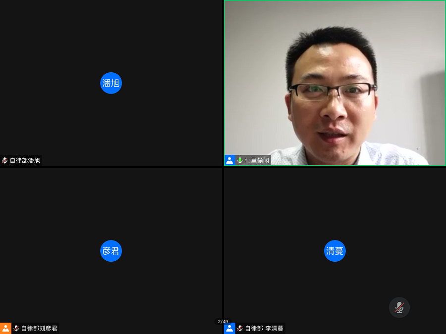 全体会议正式开始。“青春由磨砺而出彩,人生因奋斗而升华。”同学们集中学习了习近平总书记在五四青年节上的寄语,结合青年踊跃投身疫情防控的经历和事迹,加深了对五四爱国精神的理解,牢记习近平总书记对青年提出的要求,积极投身实现中华民族伟大复兴的中国梦。