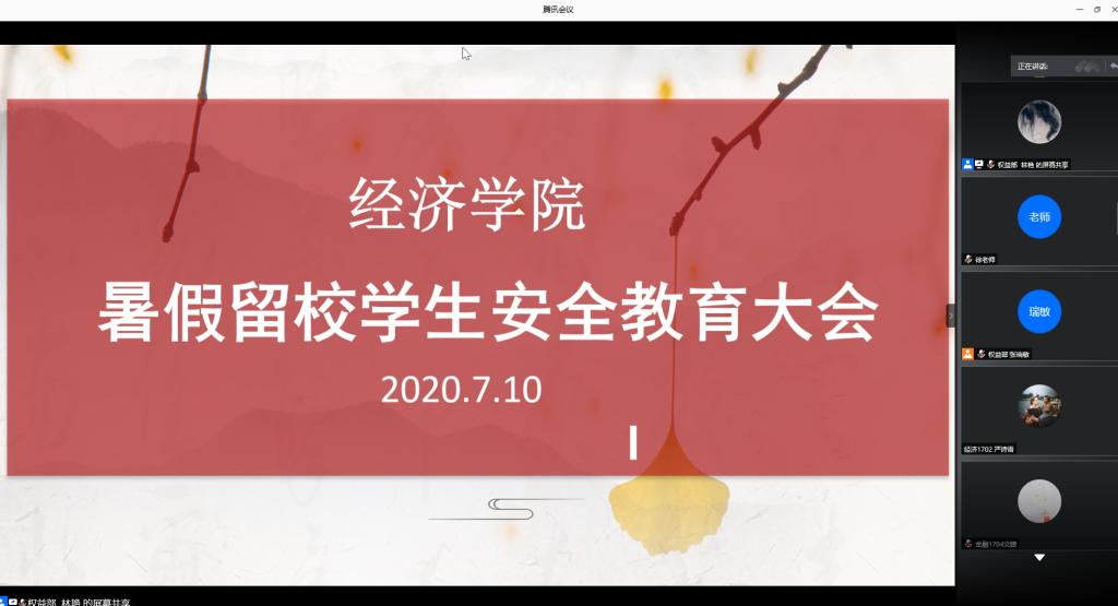 7月10日,为帮助暑假留校同学了解留校管理安排,切实落实学校防疫防控管理要求,3200威尼斯vip面向学院全体2020年暑假留校学生召开了线上暑假留校安全教育大会。学院辅导员老师以及学生会权益部就暑假留校安全问题及留校管理工作对暑假留校学生开展了专题教育。