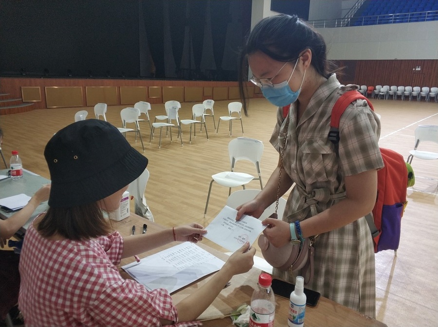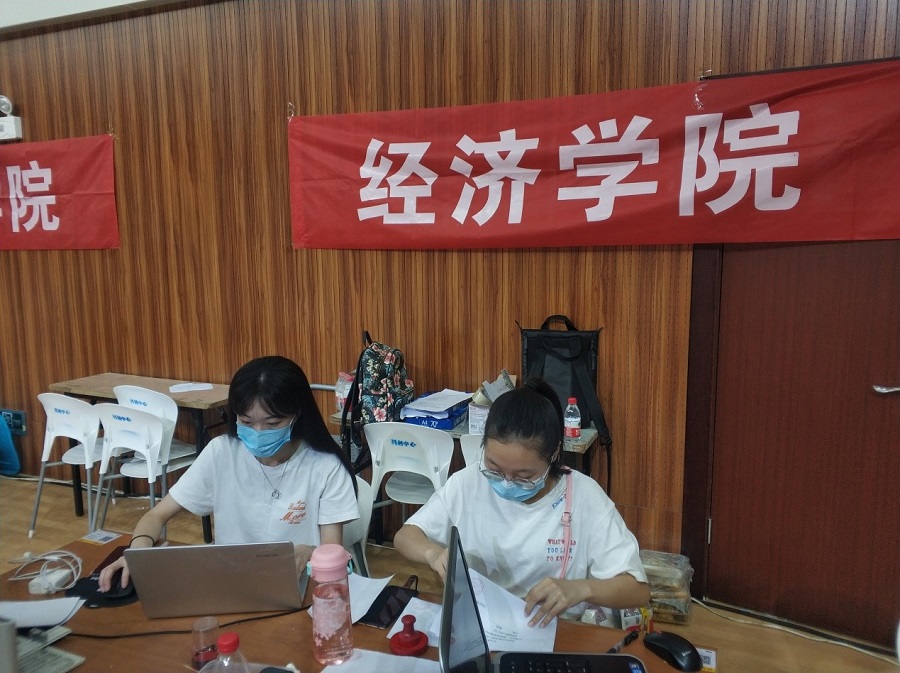 “请出示返校通行码”、“请坐这儿填风险评估表”、“在这儿盖章……来这是您的寝室入住单子和学生证”……,现场志愿者的声音和身影常伴同学左右,而在前期接待返校同学的经验和学院充足的准备下,志愿者们摸索出了更高效有序的办理流程——核验通行码、填写风险评估表、学生证盖章、打印入住单……分工明确,流程明晰,高效便捷。