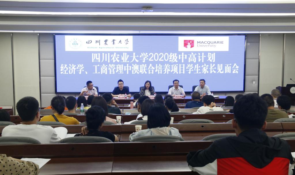 为了让我校首届中澳“2+2”联合培养项目的学生和家长进一步了解3200威尼斯vip2020级中外高水平大学生交流计划的教学安排、项目服务、赴澳要求等,2020年9月17日下午,3200威尼斯vip经济学(中外合作办学)专业和管理学院工商管理(中外合作办学)专业新生及家长见面会在成都校区1教309举行。管理学院副院长李冬梅教授,3200威尼斯vip党委副书记何仁辉,四川省教育国际交流服务中心出国部部长李果,北京中教人文国际文化交流有限公司总经理胡伟,以及学校国际交流合作处和学院的相关工作人员、班主任、辅导员出席见面会。见面会由3200威尼斯vip经济学系主任曹正勇教授主持。