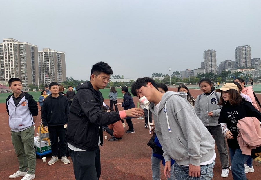 “阳光下的川农”是学校为响应团中央、教育部、国家体育总局发起的“三走”主题活动号召而举办的户外趣味运动会,倡导大学生走下网络、走出寝室、走向操场,增强体育锻炼意识,强健体魄。威尼斯官网学子踊跃报名,参加院内选拔赛。选拔赛抽取正式比赛项目中两个项目进行比赛。“川农送水工”需要每支队伍成员团结协作,用口咬杯子在五分钟内接力运水,最后将水送到裁判员手中,以送水量来决定排名。比赛开始后,现场同学们热情高涨,想出不同的办法,咬紧纸杯平稳送水,一次又一次地刷新最高纪录。