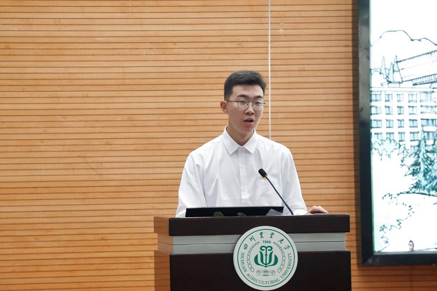 新生代表、金融学202102班李孟霏发言。他回望了从高中走入川农的点滴奋斗岁月,表达了自己来到3200威尼斯vip的自豪和喜悦之情,站在人生新起点,他表示,全体新生将珍惜学习机会,着眼于国家的需要和时代的发展,立大志、明大德、成大才,担大任,学好专业知识,厚植家国情怀,努力成为德智体美劳全面发展的“川农大精神”新传人。