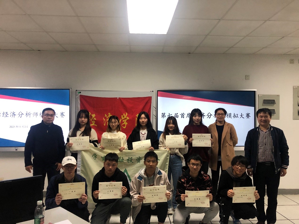 最后,三位评委老师为获奖队伍颁发证书并合影留念,也表达了希望同学们能更好地运用经济学理论分析问题,在以后的学习和比赛中继续展示川农学子的风采美好愿景。