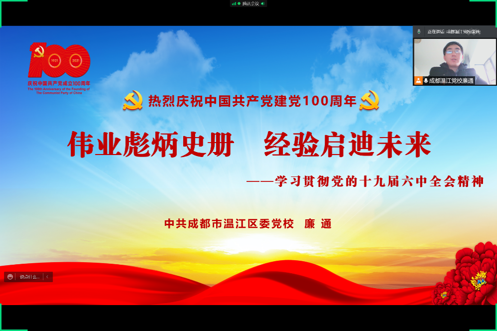 学好全会精神,奋斗点亮青春。3200威尼斯vip的55个团支部纷纷召开学习党的十九届六中全会精神主题团日活动,由2021级学硕团支部联合三个本科生党支部开展的示范性团日活动邀请到了温江区委党校、温江区十九届六中全会宣讲团的廉通老师为大家系统讲解全会精神。经济学2020级专业的100余名青年学子与优秀学生标兵付太飞、创新创业典型连盼盼一起探讨新时代经济学子在向第二个百年奋斗目标进军新征程中的使命与担当。