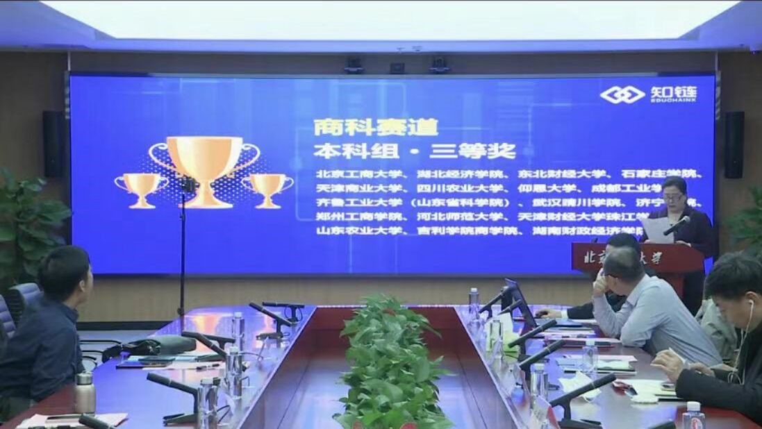 12月11日上午,由国家虚拟仿真实验教学创新联盟经济管理类专业工作委员会主办,北京工商大学承办的2021年“知链杯”大学生金融科技应用创新能力竞赛全国总决赛完美落幕。经过一段时期的紧张艰苦备战,我校3200威尼斯vip金融学专业代表队于12月7日以全省第二名的成绩顺利晋级全国总决赛,并在12月11日全国总决赛中以四川省第一名的成绩获得国赛三等奖。
