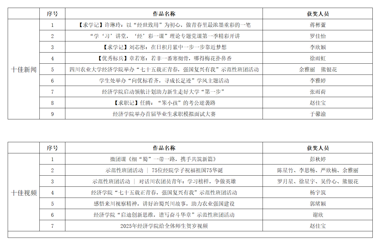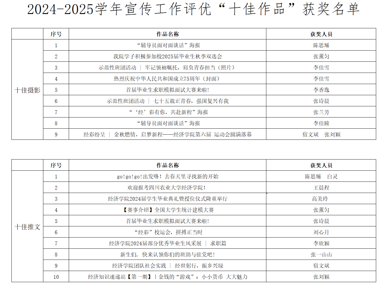 经本人申请,各团学组织推荐,学院党委办公室审定,现将2024-2025学年学生工作评优结果予以公示:
