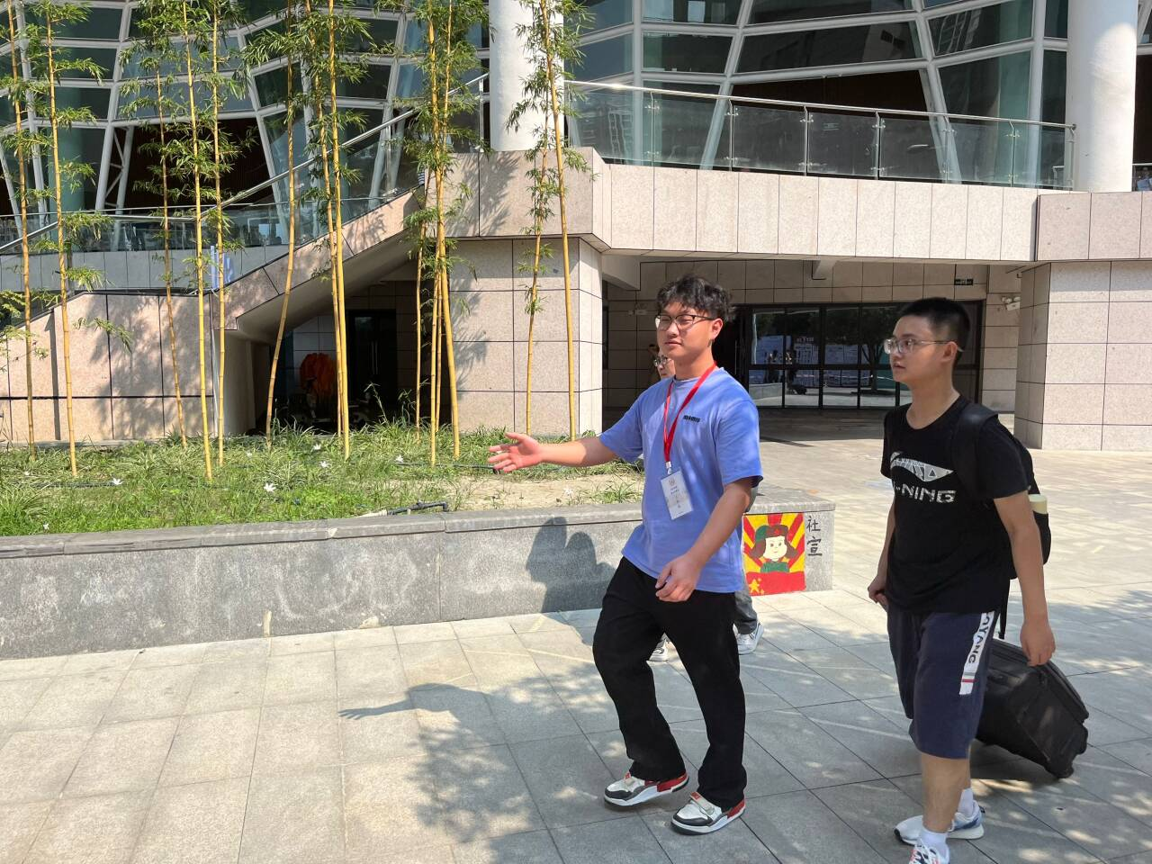(图为志愿者带领新生前往报到点)