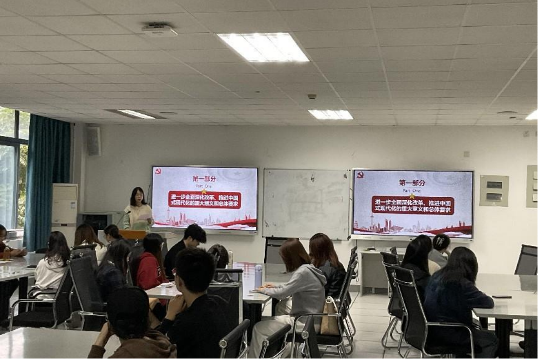 2023级应用经济学硕士研究生党支部于10月8日在4C609教室开展“学习贯彻党的二十届三中全会精神”主题党日活动。