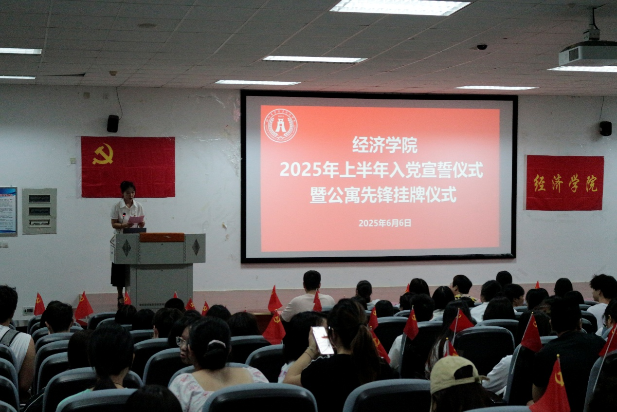 传承红色基因,践行青春使命。6月6日,威尼斯官网2025年上半年入党宣誓暨公寓先锋挂牌仪式在四教A区102教室庄严举行。学院党委领导班子成员、各党支部书记、新发展党员及入党积极分子代表等百余人齐聚一堂,共同见证这一神圣时刻。